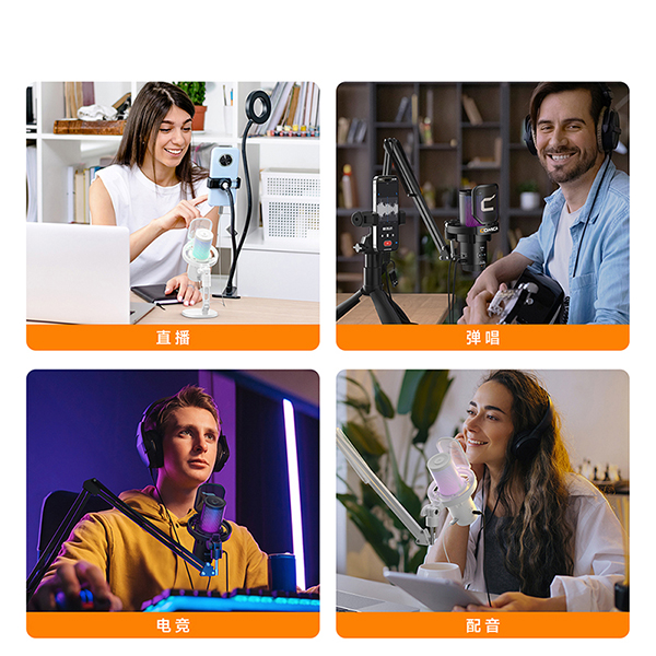 采用48kHz/24bit超高采样率和位深,搭载14mm心型指向电容咪头;精准拾取正前方音源,有效减少侧后方杂音收录