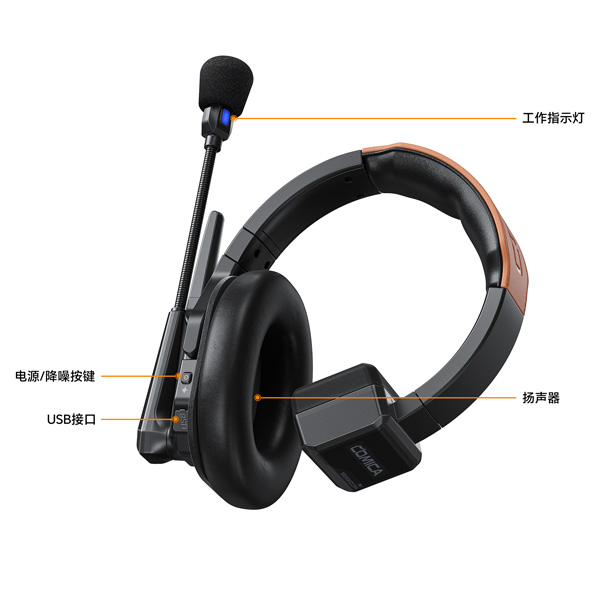 轻盈的头戴式耳机一体化设计,让操作更便捷高效。耳机佩戴长度可伸缩调节,耳罩柔软舒适,更符合人体工程学设计理念,降低长时间工作带来的不适感。