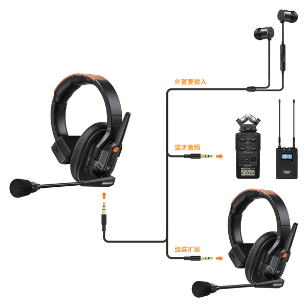自带的3.5mm接口支持3.5mm外置音频输入(可连接通话耳机、录音师监听设备及接收器等),也可用于多设备级连扩展