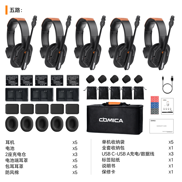 支持5人以内实时双向通话,自由配对,开机即用;通过有线级连可扩展至8人。