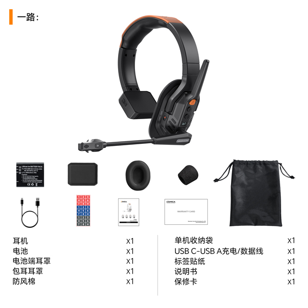 USBC接口可连接电源给耳机充电,也可用于固件升级、输出USBC数字音频(UAC功能)至PC及电脑端等进行线上多方通话,灵活便捷。